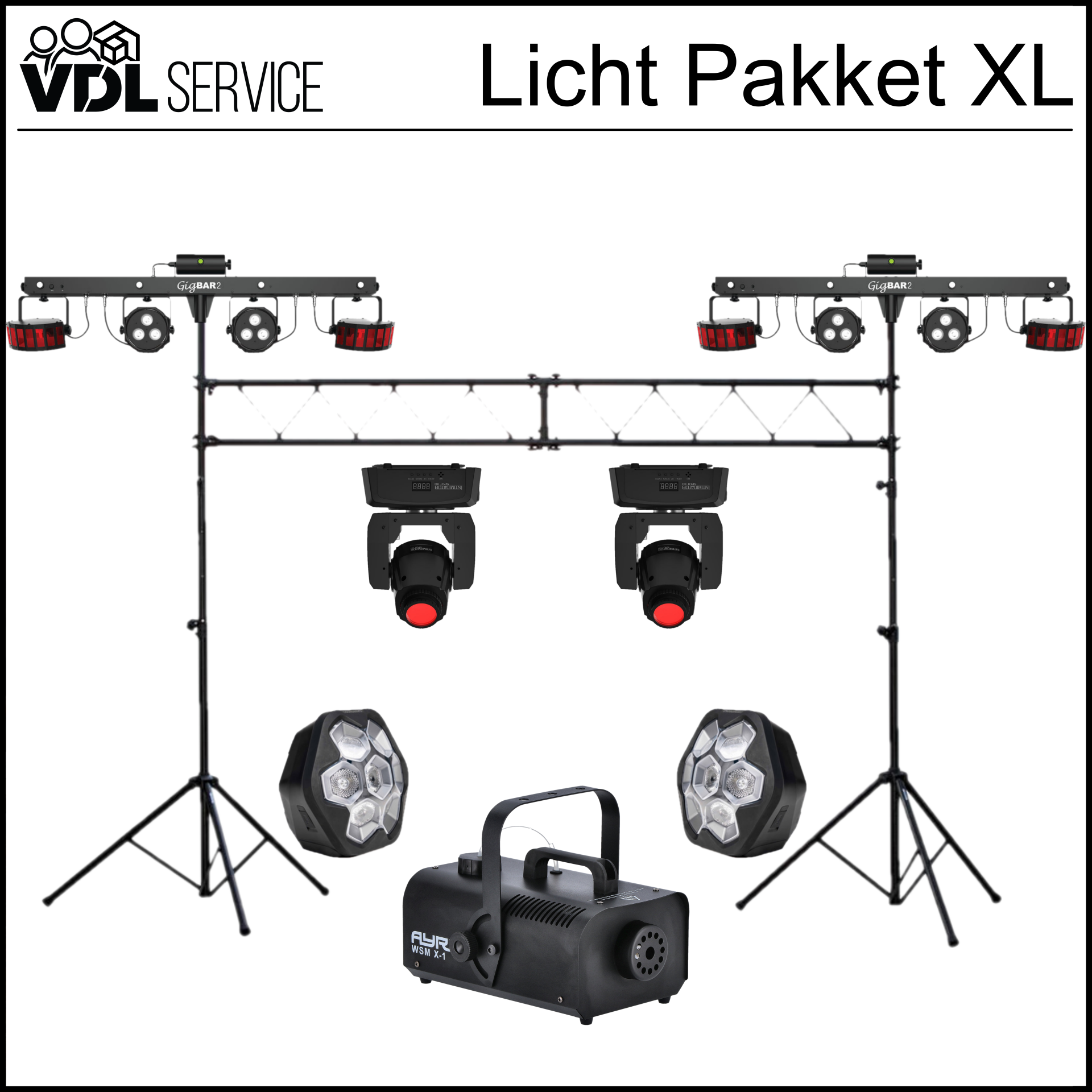 2xLichtbalk met laser + 2x Movinghead lamp+ 2x Partylamp op accu