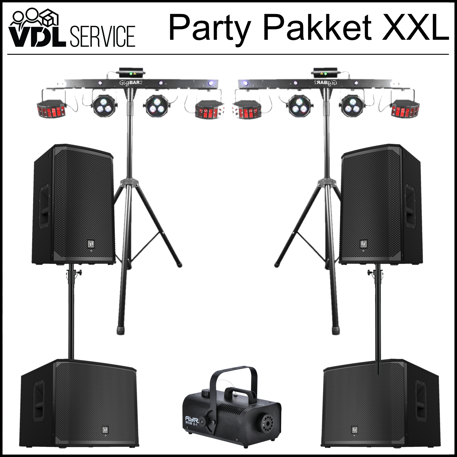 2x Electro-Voice EKX 15" serie + 2xLichtbalk met laser + Rookmachine + Statieven.